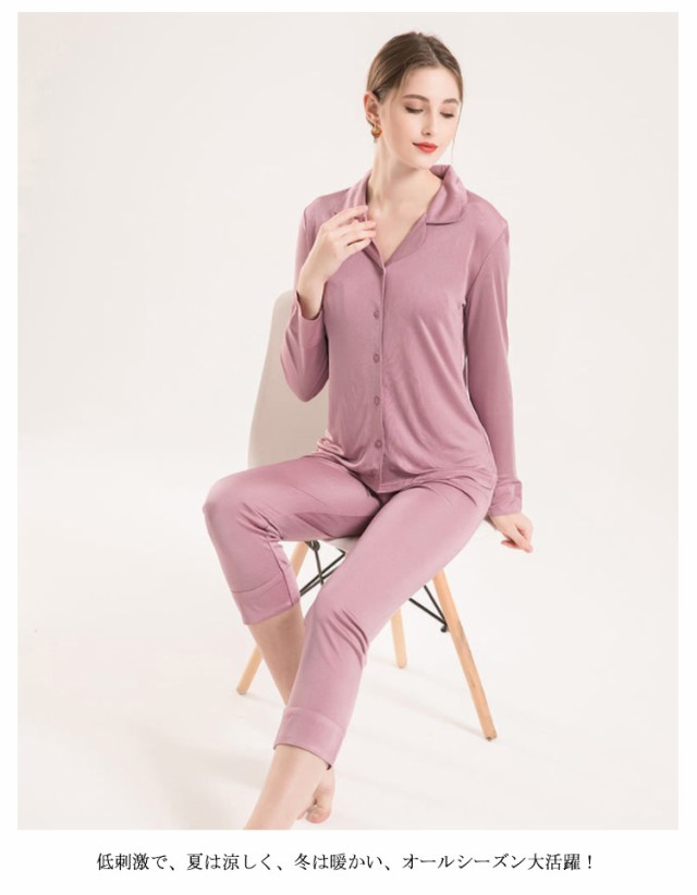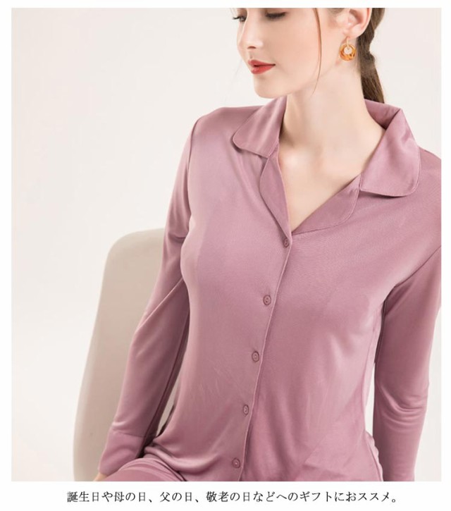 シルク パジャマ 上下セット レディース 絹 長袖 前開き ボタン 長ズボン 大きいサイズ M L XL 2XL セットアップ ペア カップル ナイトウエア ルームウエア 寝間着 敏感肌 低刺激 快眠 通気性 保温性 結婚祝い 誕生日 ギフト プレゼント 薄手 四季通用