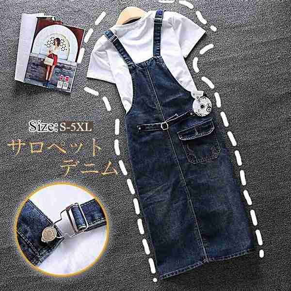 サロペット スカート デニム ジーンズ フロントボタン 膝丈スカート ワンピース オールインワン レディース ゆったり 大きいサイズ