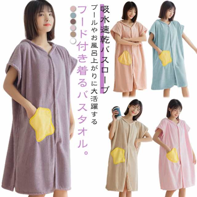 着るバスタオル 半袖 バスローブ フード付き ロング 大きいサイズ バスタオル 着る タオル レディース ラップタオル パジャマ タオルケット 大判 ふわふわ ポケット付 マイクロファイバー 吸水