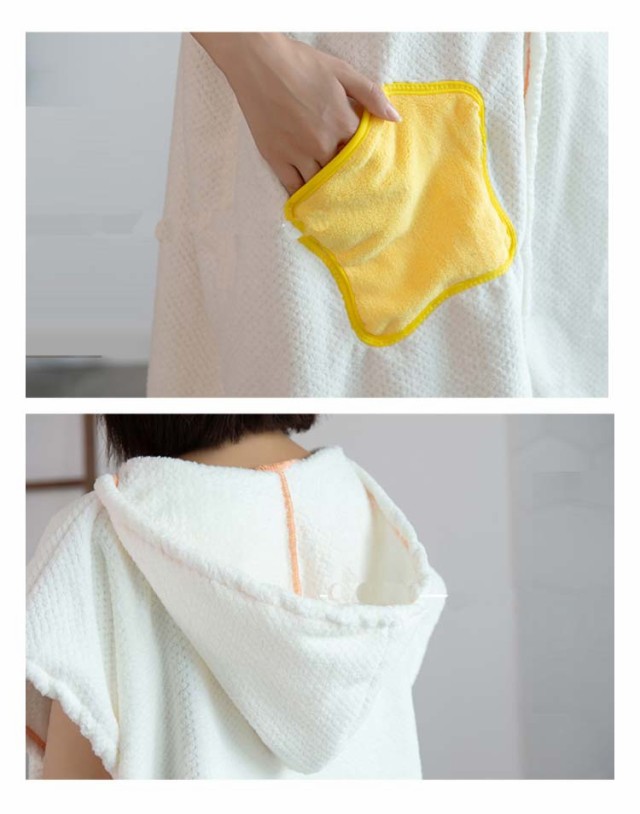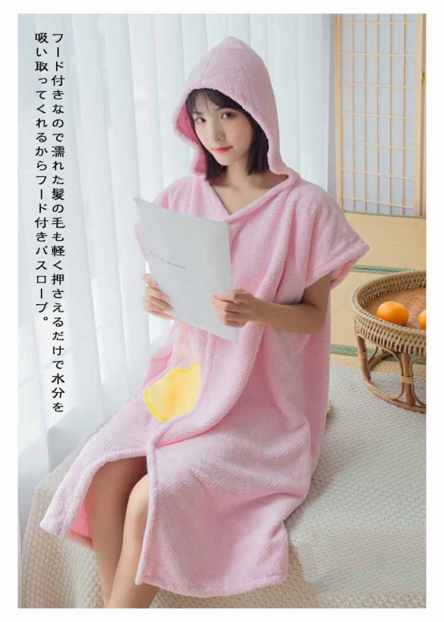 | プールやお風呂上がりに大活躍するフード付き着るバスタオル。 ふわふわのとろけるような柔らかなマイクロファイバー素材、吸水性と速乾性に優れた着るタオル。 フード付きなので濡れた髪の毛も軽く押さえるだけで水分を吸い取ってくれるからフード付きバスローブ。 肩も露出しないから、身体も冷えすぎない半袖着るバスタオルです。 ほかにはめったいに見えない前開きスナップボタンバスローブ、さっと羽織れて赤ちゃんをお風呂に入れる時にも活躍するから、子育て中のママさんにもピッタリ。 どうしても忙しくなってしまうお子様とのお風呂上がりタイムもこれ1枚でかなりの時短になるうれしい着るバスタオル。 バスローブではなくルームウェアや部屋着、パジャマ、スポーツ後の汗冷えとしてももちろんお使いいただけます。 | |