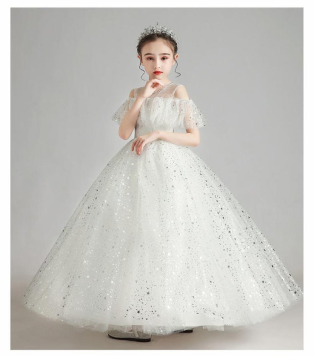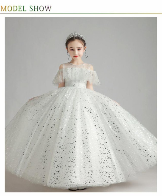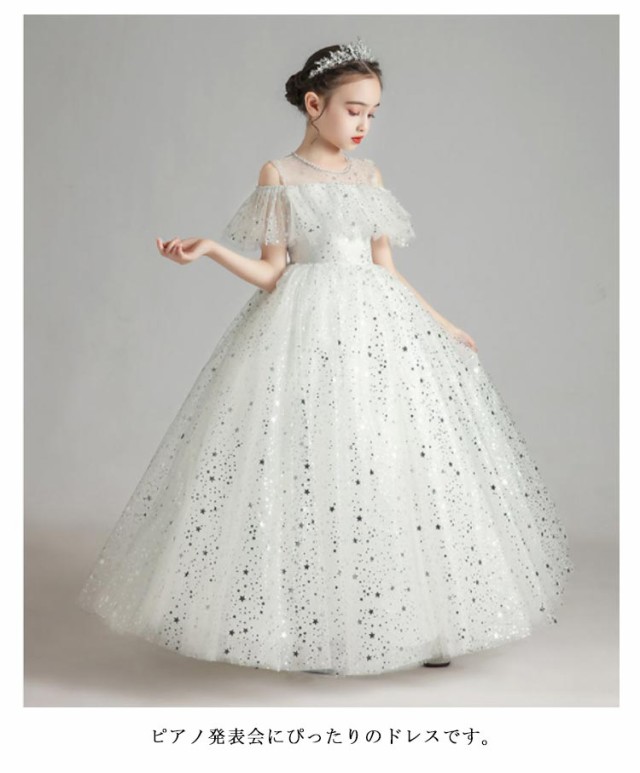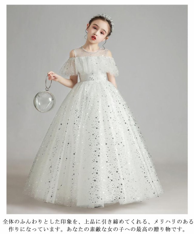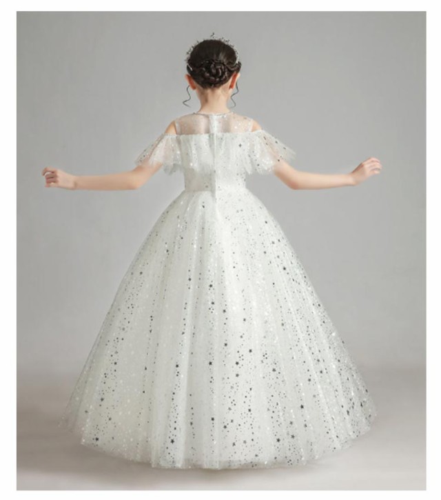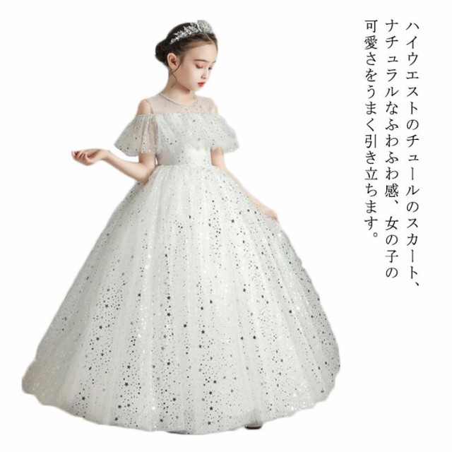 ピアノ発表会 キッズドレス 大きいサイズ ワンピース 春 夏 秋 おしゃれ 記念日 半袖 エレガント かわいい ホワイト 星 星空 女の子 結婚式 祝い 子供 誕生日 ドレス 子供 キッズ 110 120 130 140 150 160 cm 高級 上品 ふんわり レース リボン ピアノ 大人ぽっい 総柄