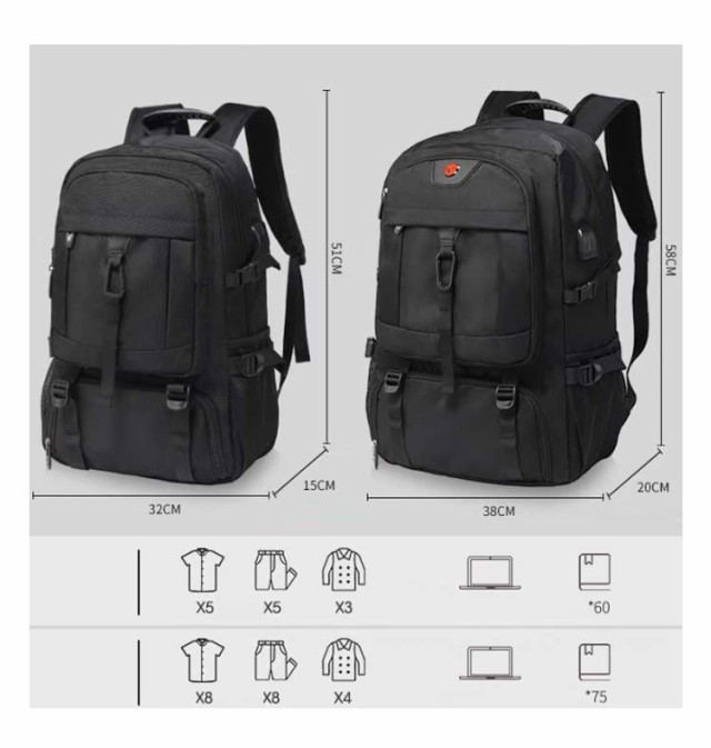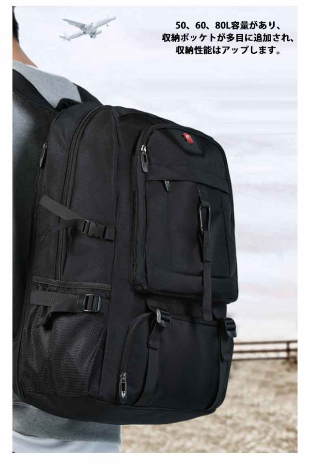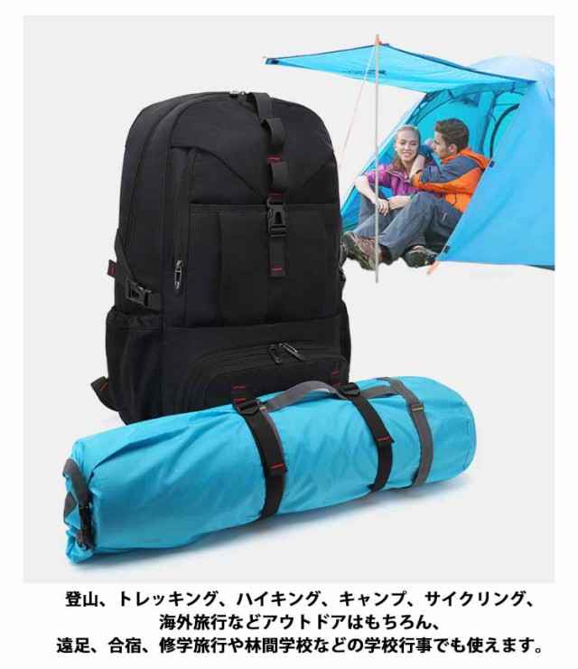 | 【大容量リュック】【50L 60L 80L】【靴収納】【撥水】【拡張可】 50、60、80L容量があり、収納ポッケトが多目に追加され、収納性能はアップします。 大きな物も楽々収納可能です。キャンプや登山道具、旅行なら3?4泊分の荷物が余裕で入り、非常時持ち出し用の防災リュックとしても十分ご活用いただけます。 盗難防止背面ポケットに携帯・財布・母子手帳など貴重品を入れてお出かけの移動にも安心。 オックスフォードの生地を採用し、水や汚れがつきにくくて、耐摩擦性にも耐久性にも優れています。 軽便で、拡張性があります。 USB充電ポートが付属され、自由に充電出来ます。 人間工学デザインと快適なストラップが併用され、体への負担がかなり減ります。 胸元に付けられているチェストベルトは、走行中の振動を減軽します。 登山、トレッキング、ハイキング、キャンプ、サイクリング、海外旅行などアウトドアはもちろん、遠足、合宿、修学旅行や林間学校などの学校行事でも使えます。 災害時の防災バッグとして防災グッズを入れるのにも便利です。 | |