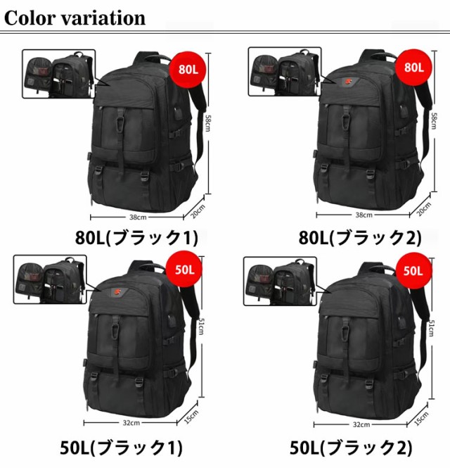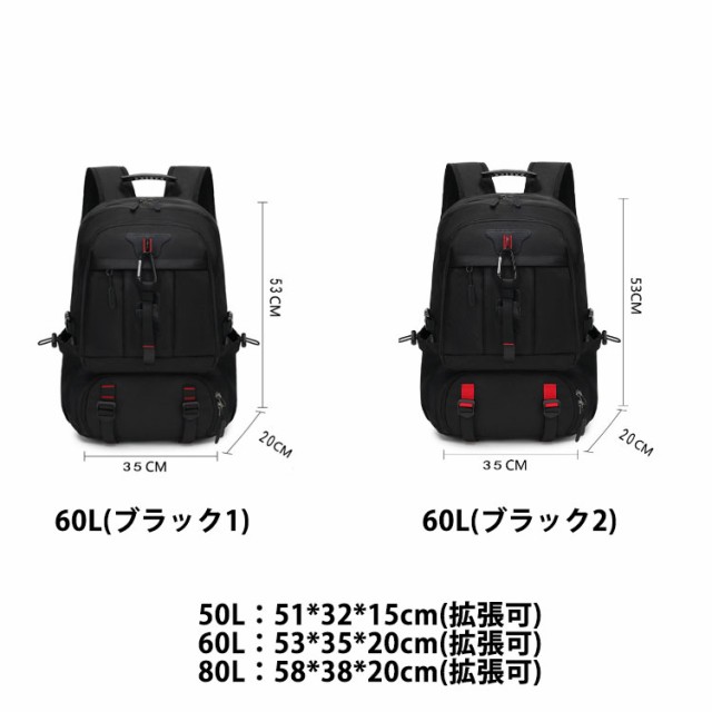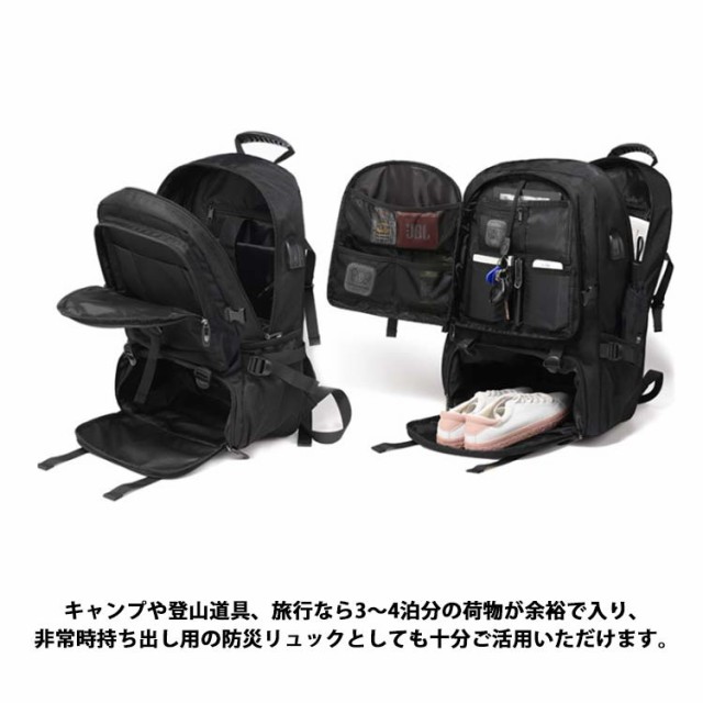 リュックサック 超大容量 リュック 撥水加工 拡張機能 バックパック 80L 50L USB充電ポート付き 靴収納 旅行 キャンプ 60L アウトドア 出張 通学 通勤 防災 ビジネス 登山リュック メンズ レディース 防水 PC17/18インチ