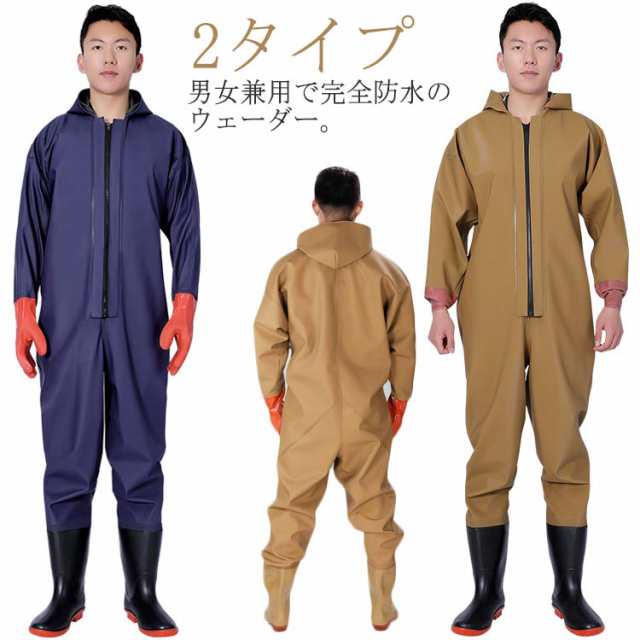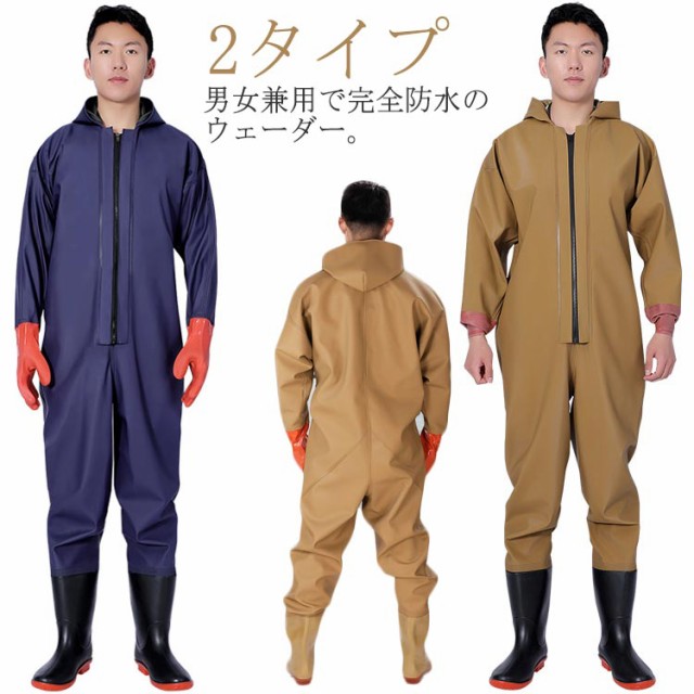 胴付長靴 ウェーダー 全身防水 釣り 防水ファスナー つなぎ 漁業 釣り用スーツ 完全防水 作業着 田植え 農作業 水産業 水仕事 除雪 2タイプ 男女兼用 防災 災害