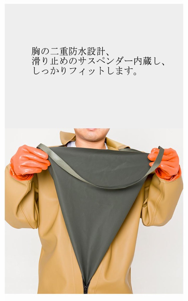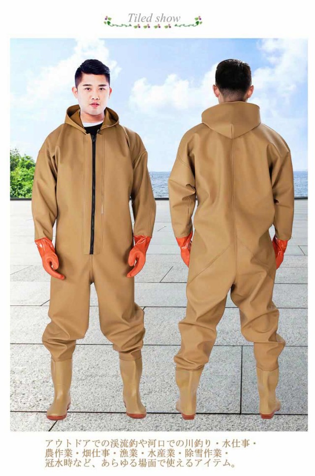 | 男女兼用で完全防水のウェーダー。 外層材質はpvcを採用し、高い耐水性のほか、油汚れや酸・アルカリにも強いです。 柔らかなニット裏地で吸汗快適、肌に優しくてさらさらです。 継ぎ目はすべて継ぎ目なく溶接し、継ぎ目ネットを1cm厚くして、水漏れしません。 胸の二重防水設計、滑り止めのサスペンダー内蔵し、しっかりフィットします。 袖口が手首にフィットし、袖口から服に水が逆流するのを防ぎます。 つなぎの手袋の設計は、静電気と酸とアルカリを防ぎます。 厚めのオックスフォード底が柔らかくてグリップ力抜群で安心。 アウトドアでの渓流釣や河口での川釣り・水仕事・農作業・畑仕事・漁業・水産業・除雪作業・冠水時など、あらゆる場面で使えるアイテム。 | |