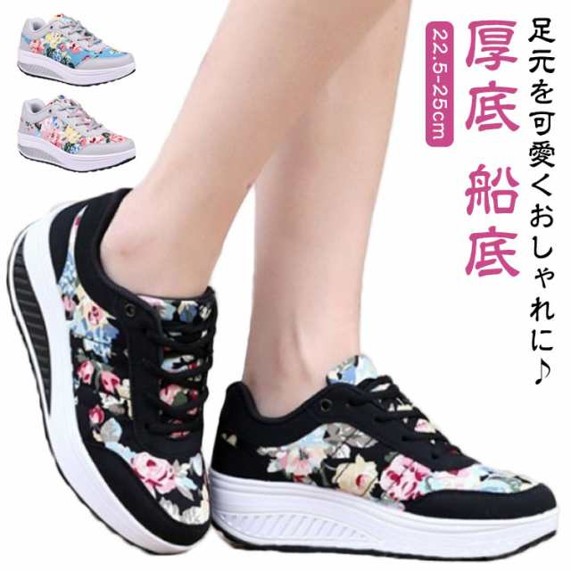 スニーカー レディース 厚底 船底 スニーカー 花柄 おしゃれ 可愛い ダッドスニーカー レースアップ シューズ 歩きやすい 疲れにくい 甲高 幅広 軽量 カジュアル 美脚 ウォーキングシューズ ナースシューズ