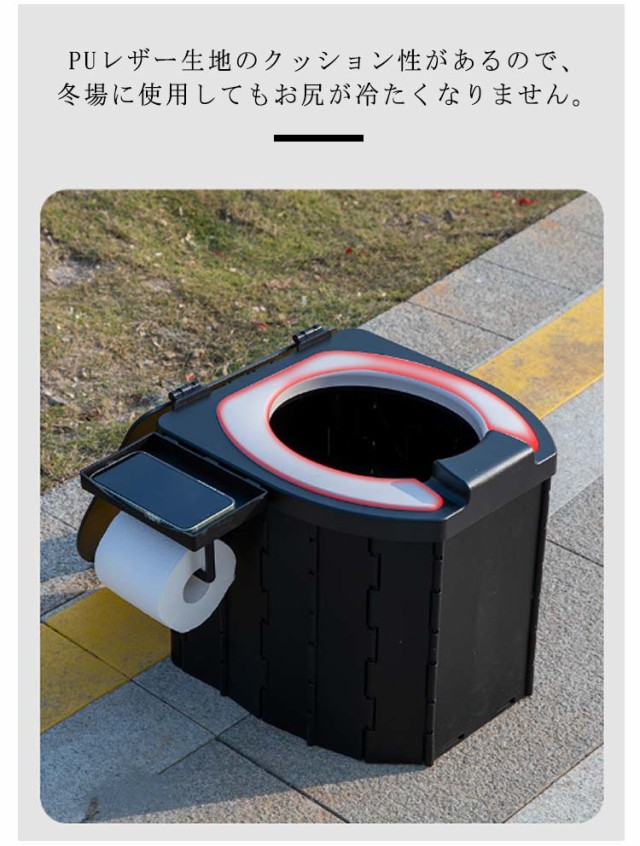 | 【防災用の簡易トイレ】 【折り畳み】 【蓋付きタイプ】 【ペーパーホルダー付き】 様々な場面で大活躍する折り畳み式の簡易トイレが新登場。 PUレザー生地のクッション性があるので、冬場に使用してもお尻が冷たくなりません。 トイレットペーパーフックが付き!携帯スタンドが付いているので、携帯電話を置くことができます。 ピッタリと閉まる蓋つきタイプで、お気になる臭い漏れもばっちり解決できます。 アウトドアや車載など様々なシーンで普段使いすることができます。 高品質のABS素材を採用して、耐荷重は200kg、誰でも気軽に使用できます。 座面は斬新な長円形型で、男性が使用しても座りやすいです。 おしっこガードでおしっこの飛び散りを防ぎ、お掃除もラクラク。 折りたたみトイレとして、ゴミ箱としてもお使いいただけます。 折り畳み式で車のトランクなどにも邪魔にならずに収納可能!保管や持ち運びが便利です。 | |