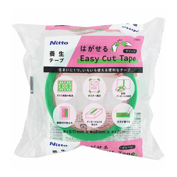 ニトムズ 養生テープ はがせる イージーカットテープ グリーン 幅48mm x 長さ20M(手で切れる 貼って剥がせる 仮止め 台風 災害 ガラス・