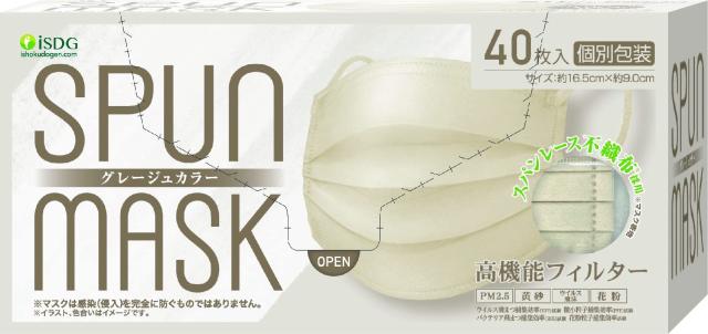◆商品名:医食同源ドットコム iSDG スパンレース不織布カラーマスク 個包装 40枚入り グレージュ