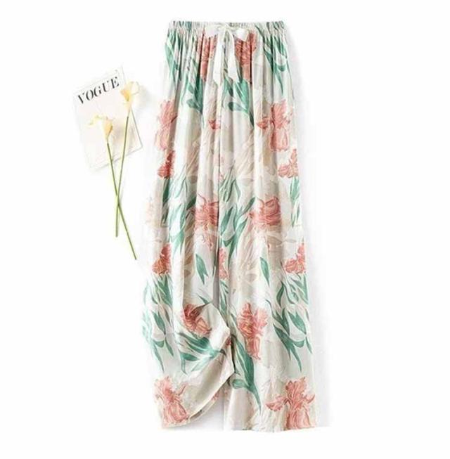 広い脚 ステテコ ルームパンツ 薄い 部屋着 レディース 涼しい快適な ズボンだけ レーヨン ルームウェア 花柄 ゆったり 体型カバー リラックス 春 パジャマ かわいい 九分丈 婦人 パジャマ ロングパンツ サラテロパンツ ゆったり 夏
