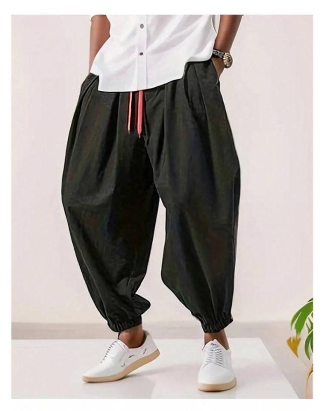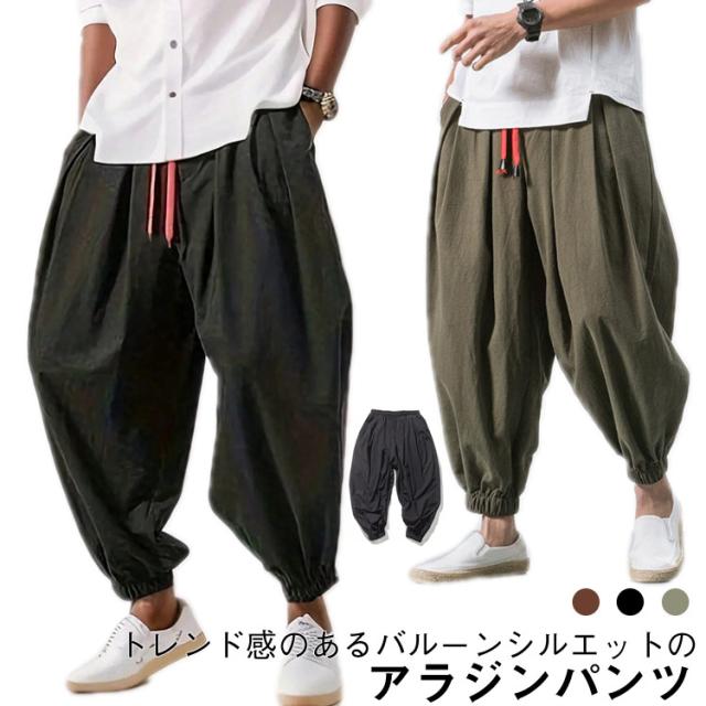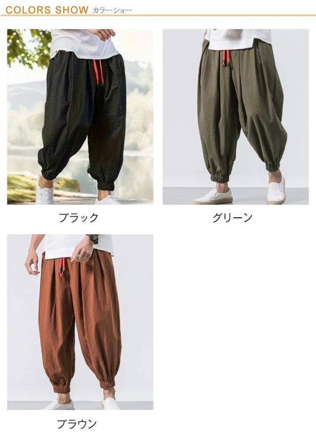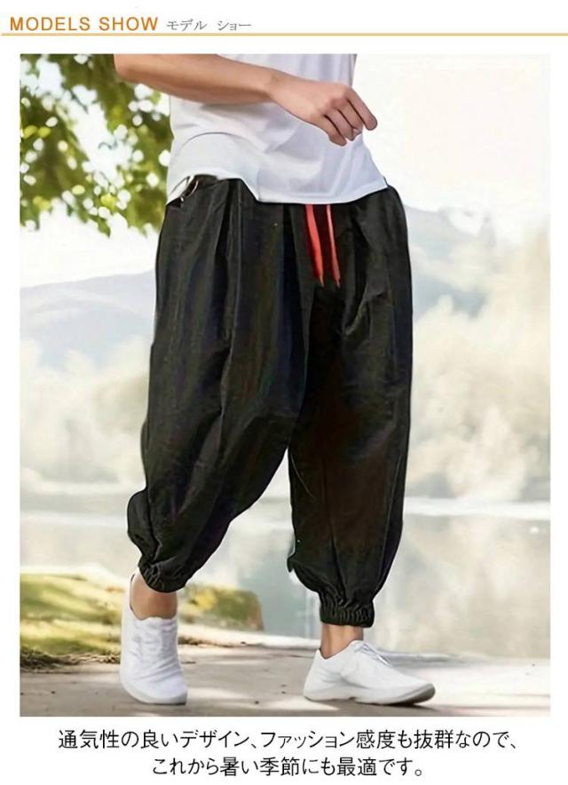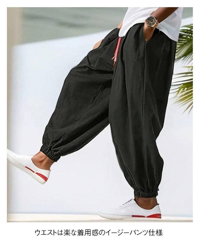 メンズ タックパンツ ポケットあり サルエルパンツ クロブトパンツ イージーパンツ パンツ クロップドパンツ ウエストゴム 夏
