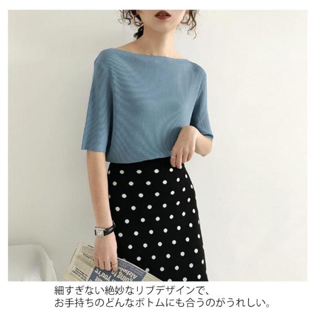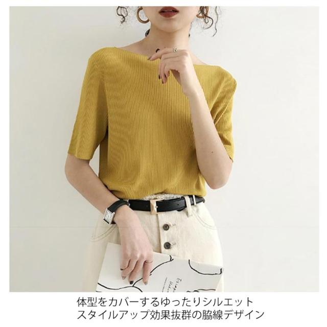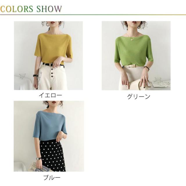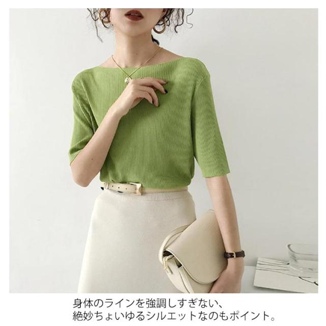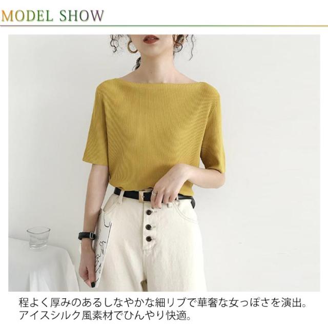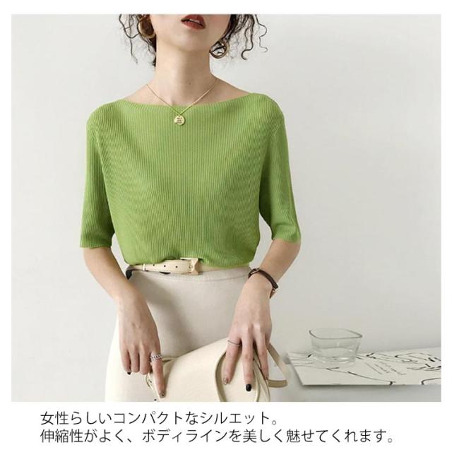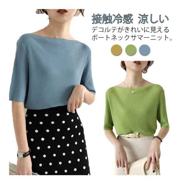 レディース tシャツ プルオーバー トップス アイスシルクセーター ボートネック アイスシルク レディース 大人 五分袖 ライトニット 無地 半袖Tシャツ サマーニット ショート丈 ニットソー 着やせ リブニット 半袖 サマーニット 接触冷感 涼しい 送料無料 夏2025新作 韓国風