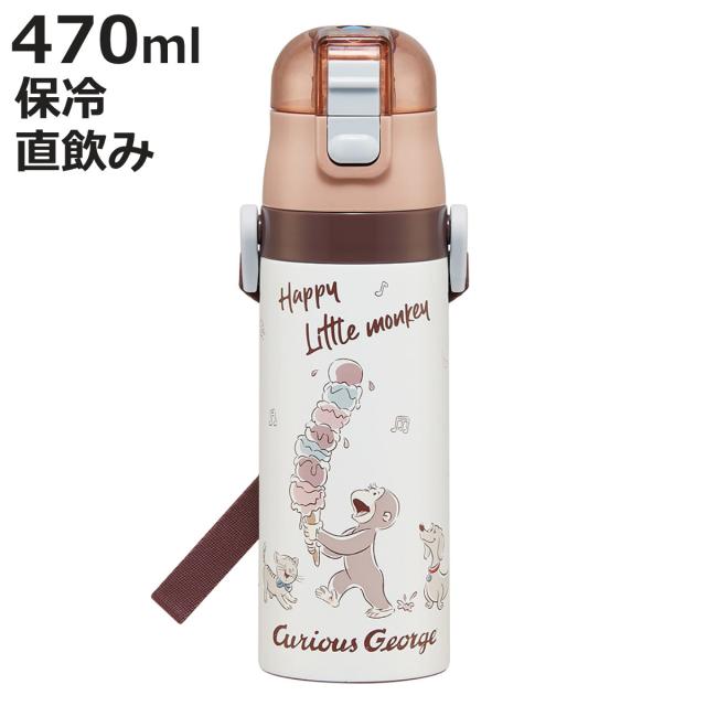 水筒 470ml 超軽量ダイレクトボトル おさるのジョージ25 ( 保冷 軽量 直飲み ワンタッチ ステンレスボトル 子供用水筒 子供 直のみ 軽い 超軽量 ワンプッシュ ダイレクトボトル ダイレクト ボトル ステンレス )