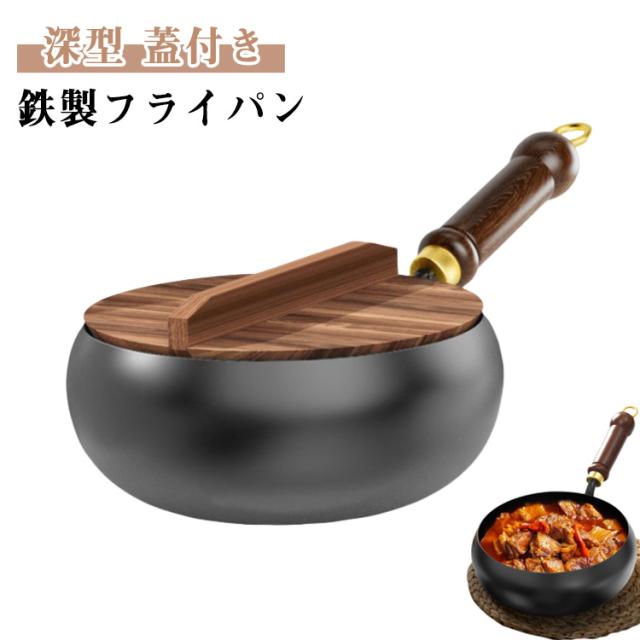 鉄製 木製 深型 調理道具 フライパン キャンプ 深型 蓋付き 鉄のフライパン 中華鍋 鉄分摂取 軽量 高温調理 炒め鍋 誕生日 結婚祝い 焦げにくい プレゼント ギフト 新築祝い 小型 深型 フライパン