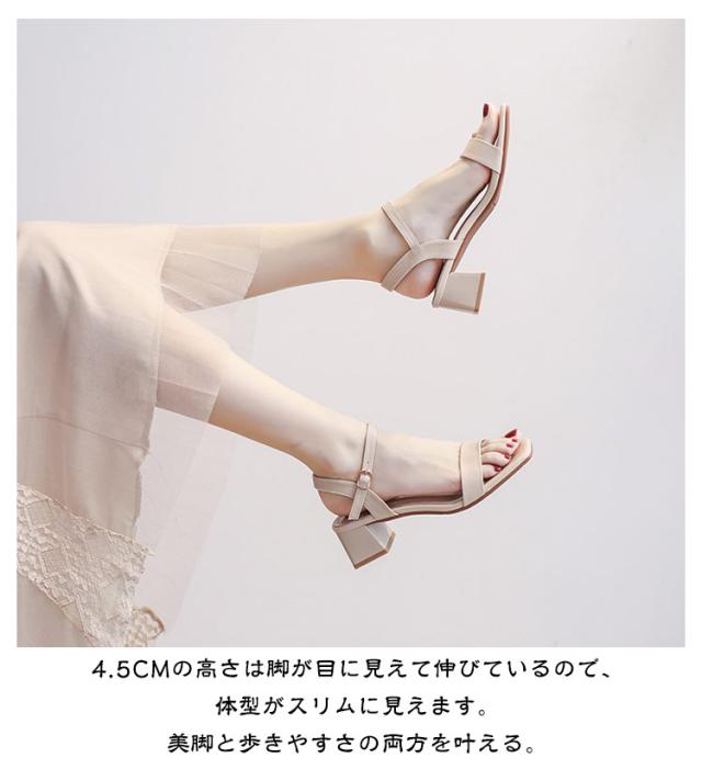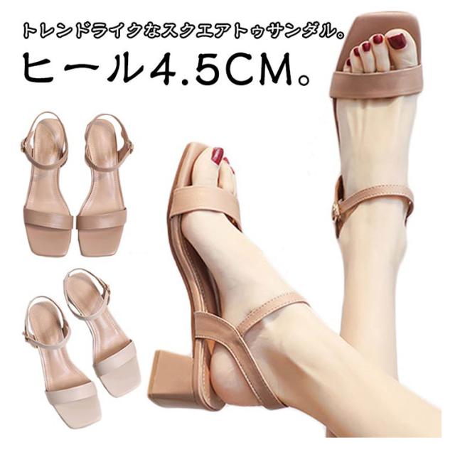 アンクルストラップ 太ヒール スクエアトゥパデッドサンダル レディース スクエアトゥ チャンキーヒール ヒール4.5cm シンプル おしゃれ スクエアトゥ 歩きやすい 滑りにくい カジュアル スクエアトゥ きれいめ