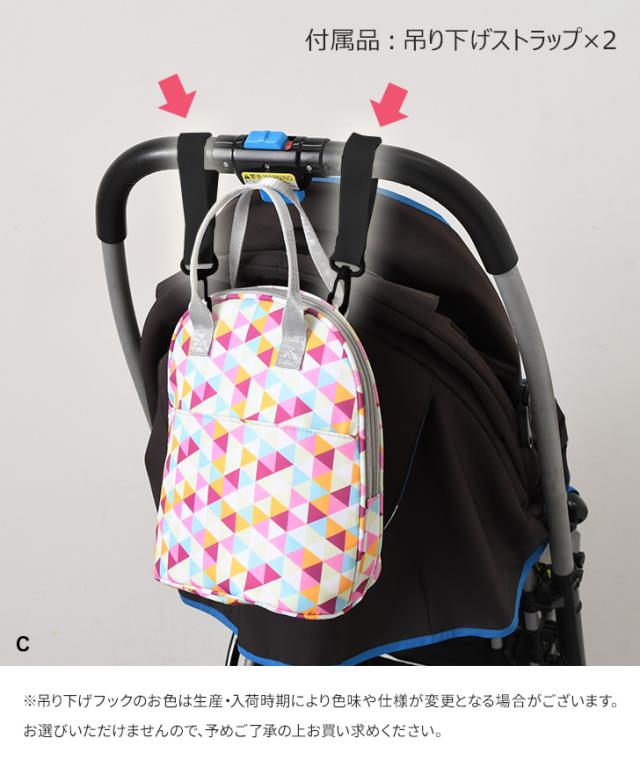 ベビーカーに吊り下げできるストラップ付きの3way仕様!