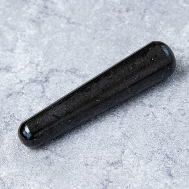 心を落ち着け、内なる強さを引き出す天然のヒーリングストーン。こちらのマッサージ棒は、深みのある艶やかな黒が魅力のブラックオニキスから丁寧に削り出されています。ブラックオニキスは、精神の安定を促し、ネガティブなエネルギーから守る石として知られ、日々のセルフケアに頼もしいサポーターとなります。先端がやや細くなっており、手にしっくりと馴染む形状。ツボ押しマッサージやセルフケアはもちろん、ヨニストーンとしての使用にも適しています。深く静かな石のエネルギーを取り入れることで、自分軸を整え、地に足のついた安定感をもたらしてくれます。