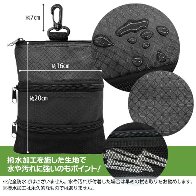 新作 3層式多収納スリム撥水ゴルフポーチ メンズ レディース ラウンドポーチ ゴルフ ボールケース ボールポーチ ボールホルダー ボール ティーケース 軽量 大容量 収納 ベルト ベルトポーチ ウエストポーチ 便利