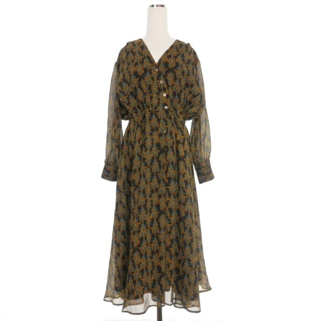 【中古】エレンディーク ELENDEEK 金木犀 シャツワンピース ドレス 長袖 01 ブラック/イエロー/グリーン 511920301601