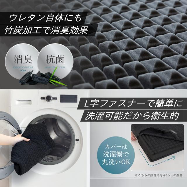 | 素材 | ・材質 :カバー表面生地:ナイロン85%,ポリウレタン15% 裏生地:滑り止め生地(ポリエステル100%) 中材:ウレタンフォーム(厚み:5cm) |