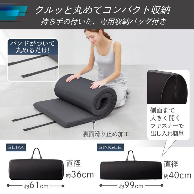 【商品仕様】●スリムサイズ : 約60x180x5cm●【カバー素材】カバー表面生地:ナイロン85%、 ポリウレタン15%、裏生地:滑り止め生地(ポリエステル100%)、【中材】:ウレタンフォーム ●カラー : チャコールグレー●製品重量 : 約1.8kg ●梱包サイズ : 18×18×63cm ●日本語取扱説明書 ●安心の1年間保証書 ●低ホルムアルデヒド仕様 ●製造国:日本企業開発/日本デザイン/中国専用工場生産
