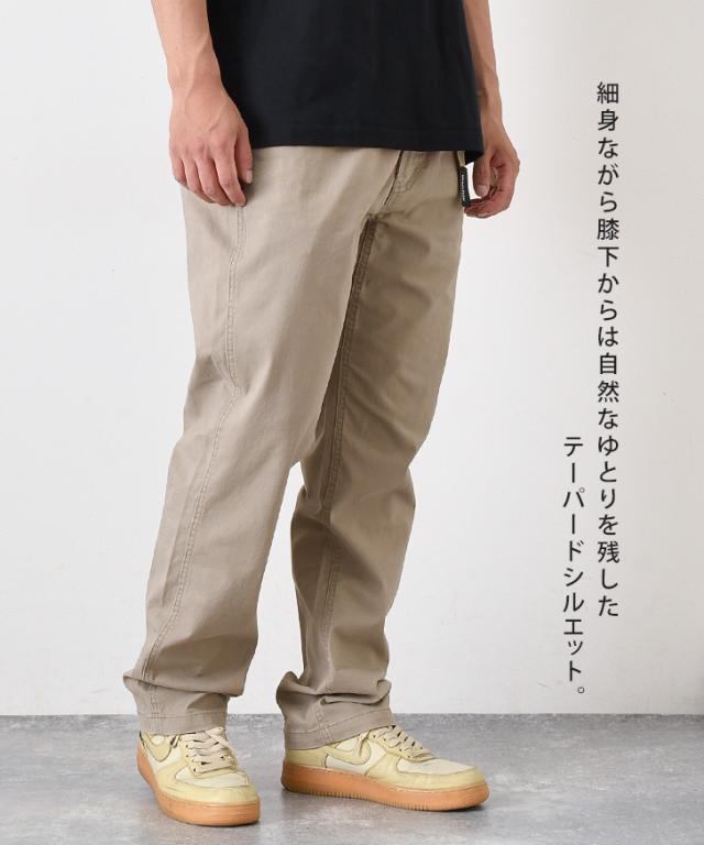 細身ながら膝下からは自然なゆとりを残したテーパードシルエット。