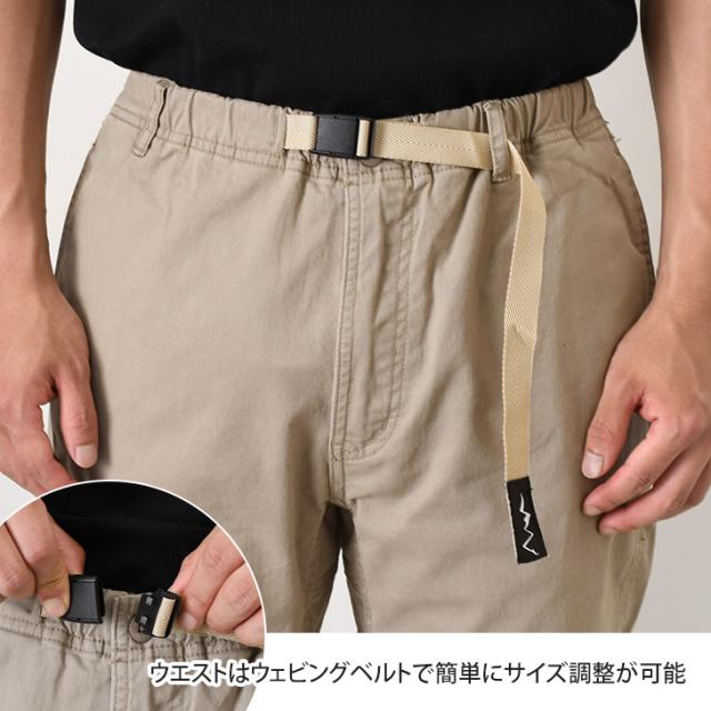 ウエストはウェビングベルトで簡単にサイズ調整が可能。