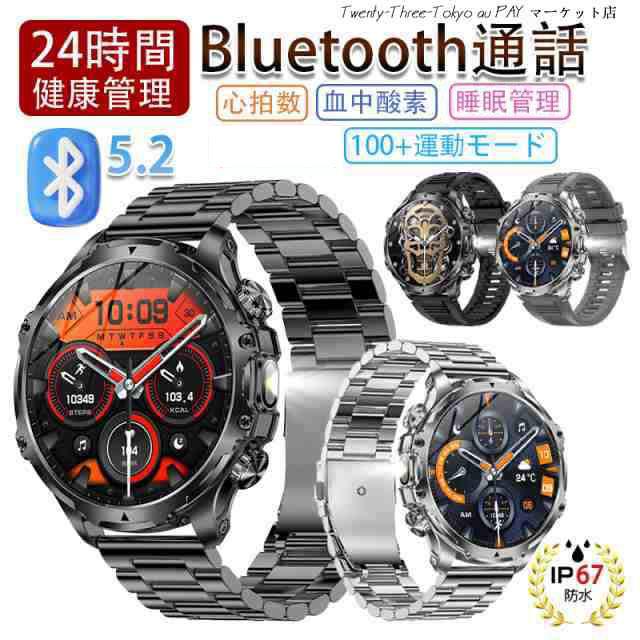【三太郎の日】スマートウォッチ メンズ 2026 軍用規格 iPhone アンドロイド対応 丸型 1.9インチ超大画面 smart watch 血中酸素測定 歩数計 活動量計 通話機能付き 100種類運動モード 腕の懐中電灯 耐衝撃 IP67防塵防水 長持ちバッテリー 腕時計 父の日 プレゼント
