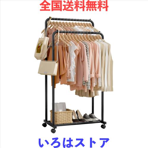 ◆商品名:Sakugi ハンガーラック - キャスター付きハンガーラック ダブルタイプ メッシュ棚付き オシャレデザイン 衣類、ドレス、セーター、コート