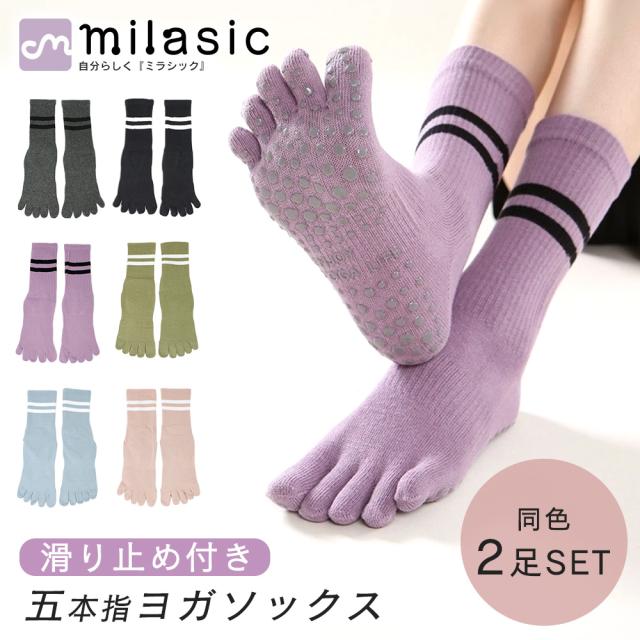 ヨガソックス 5本指 滑り止め 2足セット ヨガ 靴下 ピラティス オールシーズン 五本指 つま先あり グリップ付き マラソン ジョギング レディース 普段使い かかとあり 23 23.5 24 24.5 25 センチ ランニング ウォーキング ジム 登山 MILASIC ポイント消化