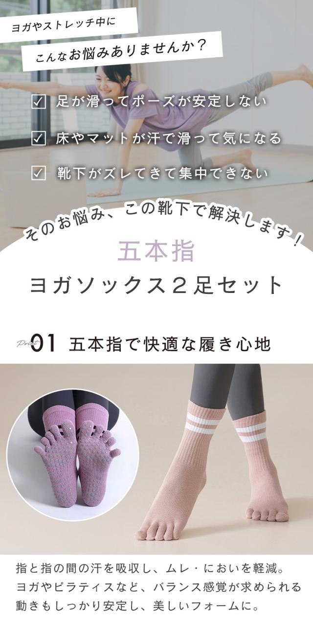 ヨガソックス/5本指/2足組/ヨガ/靴下/ピラティス/オールシーズン/滑り止め/2足セット/五本指/つま先あり/グリップ付き/マラソン/ジョギング//レディース/普段使い/かかとあり/23/23.5/24/24.5/25/センチ/ムレ/におい/軽減/ランニング/ウォーキング/ジム/登山/トレーニング/トレラン/アウトドア/トレイルラン/レーシングラン/ダイエット/筋トレ/陸上/部活/テニス/バスケットボール/ゴルフ/ハイキング/ラグビー/スポーツ靴下/スポーツソックス/フィット/厚手/つま先/かかと/滑り止め付き/靴下レディース/五本指ソックス/フィットネス/ストレッチ/ソックス/グリップソックス/5本指ソックス/ピラティス靴下/吸湿性/ムレにくい