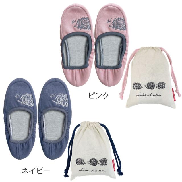 携帯スリッパ リサ・ラーソン はりねずみ携帯スリッパ 約22.0〜23.0cm ( 洗える 室内 レディース リサラーソン ハリネズミ 雑貨 持ち運び かかとあり ルームスリッパ 携帯用 インテリア雑貨 自宅 室内用 静音 北欧 巾着付き )