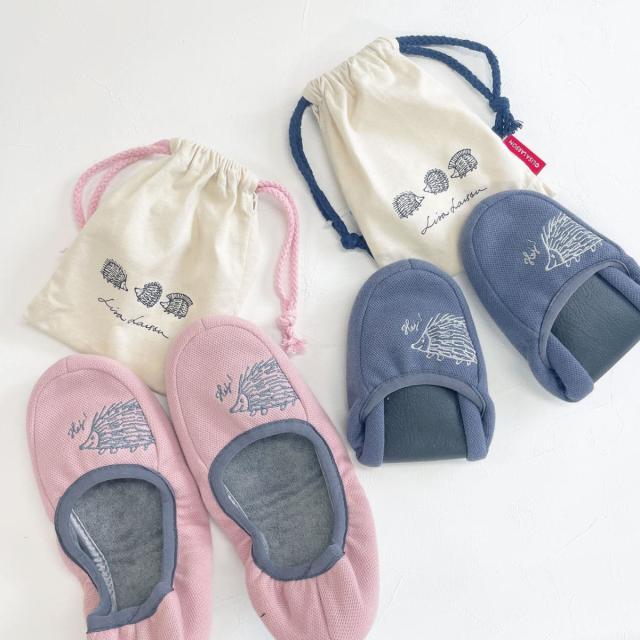 携帯スリッパ リサ・ラーソン はりねずみ携帯スリッパ 約22.0〜23.0cm ( 洗える 室内 レディース リサラーソン ハリネズミ 雑貨 持ち運び かかとあり ルームスリッパ 携帯用 インテリア雑貨 自宅 室内用 静音 北欧 巾着付き )