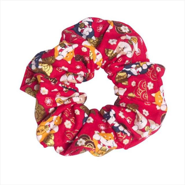■商品名:シュシュ まねきしば ヘアアクセサリー 雑貨 和柄生地 和風 アクセサリー
