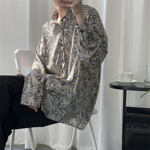 アロハシャツ シャツ メンズ 花柄 開襟シャツ 男女兼用 夏物 秋物 ハワイアン 長袖 ゆったり 体型カバー 大きいサイズ ヴィンテージ風 シンプルデザイン オープンカラー カジュアル ストリートリゾート 旅行 海 ビーチ レトロ グレー M-3XL