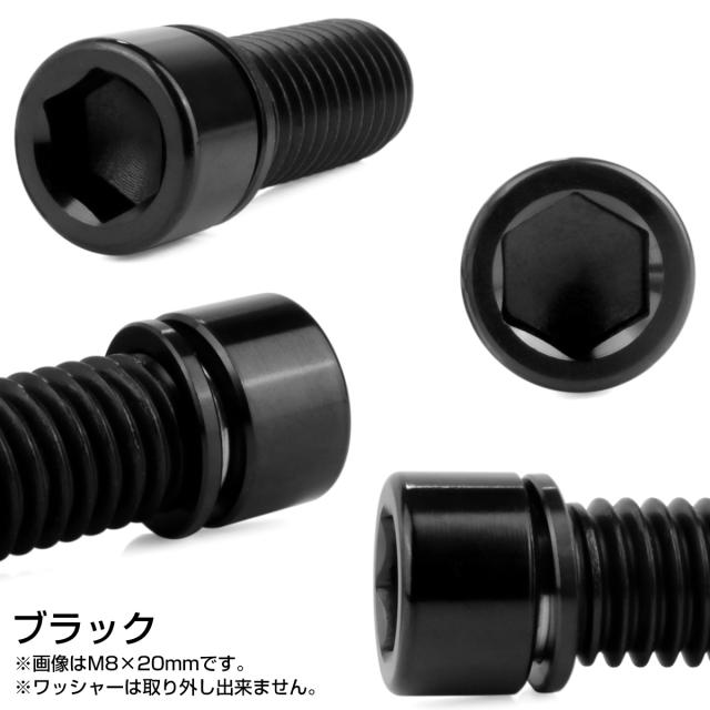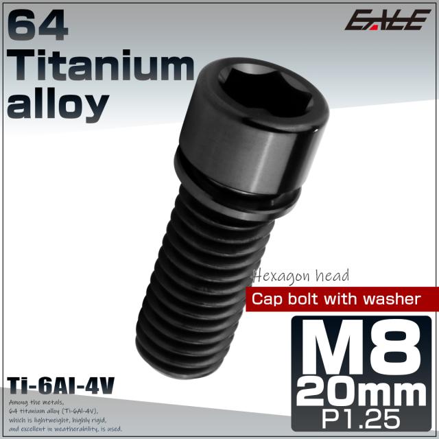 チタンボルト M8×20mm P1.25 ワッシャー組込 小頭 キャップボルト 六角穴付き 座金組込ねじ ブラック JA2454