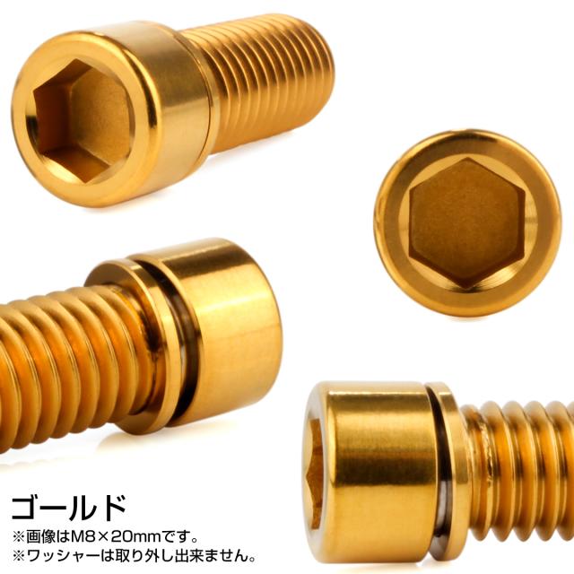 チタンボルト M8×25mm P1.25 ワッシャー組込 小頭 キャップボルト 六角穴付き 座金組込ねじ ゴールド JA2456
