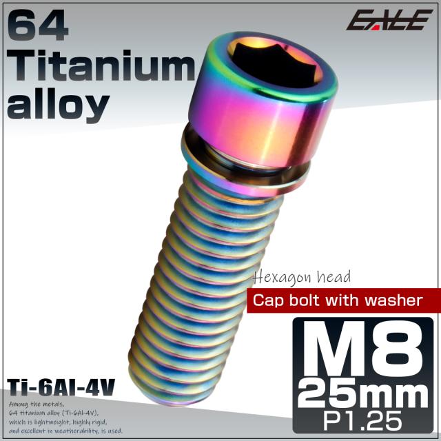 チタンボルト M8×25mm P1.25 ワッシャー組込 小頭 キャップボルト 六角穴付き 座金組込ねじ レインボー 虹色 JA2457