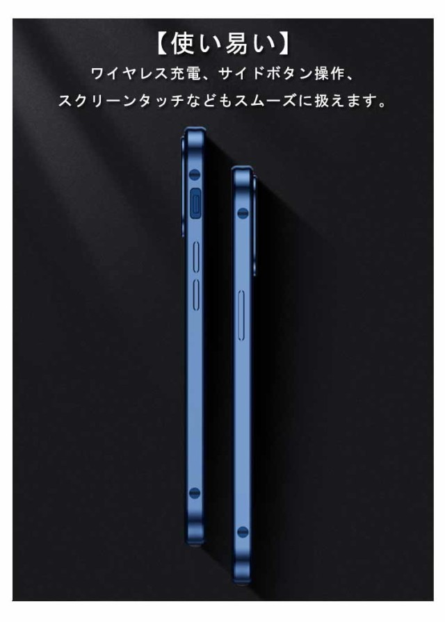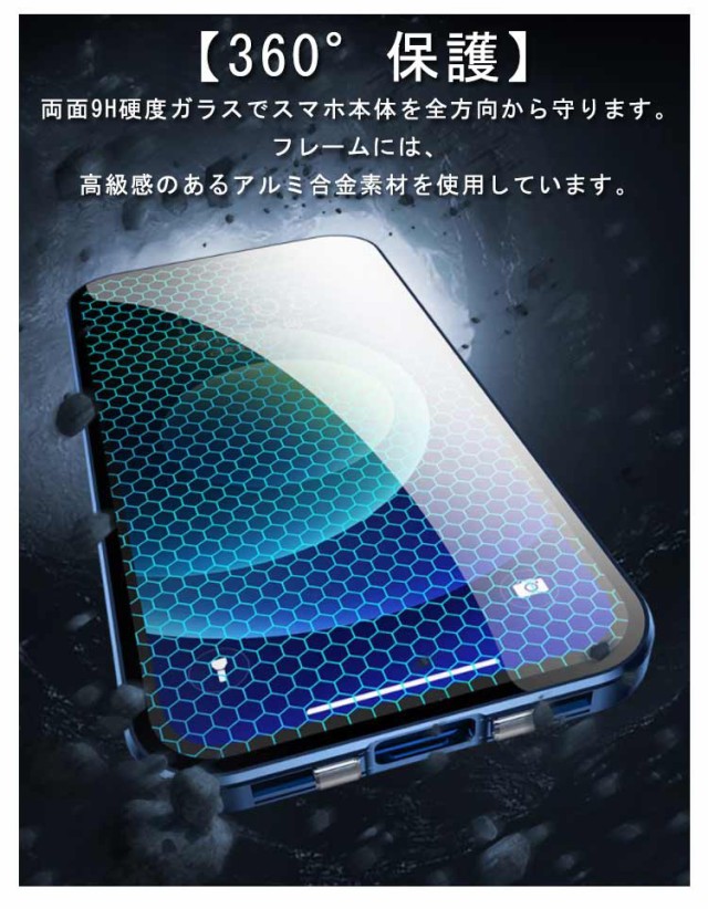 【360°保護】両面9H硬度ガラスでスマホ本体を全方向から守ります。フレームには、高級感のあるアルミ合金素材を使用しています。