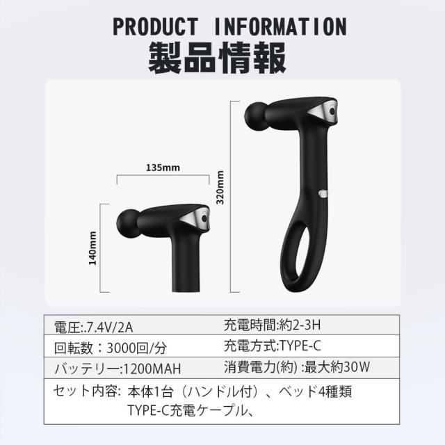 ★即納★ 背中 筋膜リリース マッサージ機 全身 健康 電動マッサージガン 充電式 切り替え 4種類ヘッド 6段階調節可能 全身ケア 軽量