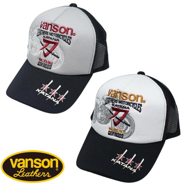 VANSON バンソン スズキ SUZUKI コラボ キャップ 帽子 メンズ ツイルメッシュ 刺繍 刀 GSX1100S SMV-2504 送料無料