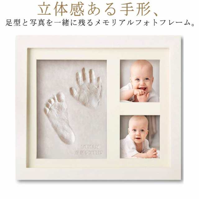 | 立体感ある手形、足型と写真を一緒に残るメモリアルフォトフレーム。 「かわいい手足を質感まで残す」粘土ならではの温かみで、お子様やペットの今しか残せないかわいい手足を立体的に残せます。 高保湿の粘土を使用するので、赤ちゃんの手足型取りに失敗しても、やり直すことができます。 フットとスタンド付きで、置き・掛け両用できるから、テーブルや棚に並べたり、他の写真と一緒に壁に飾ったりできるのが嬉しいポイント。 出産祝い、愛犬愛猫などペットの記念日、誕生日などの贈り物としても喜ばれます。 | |