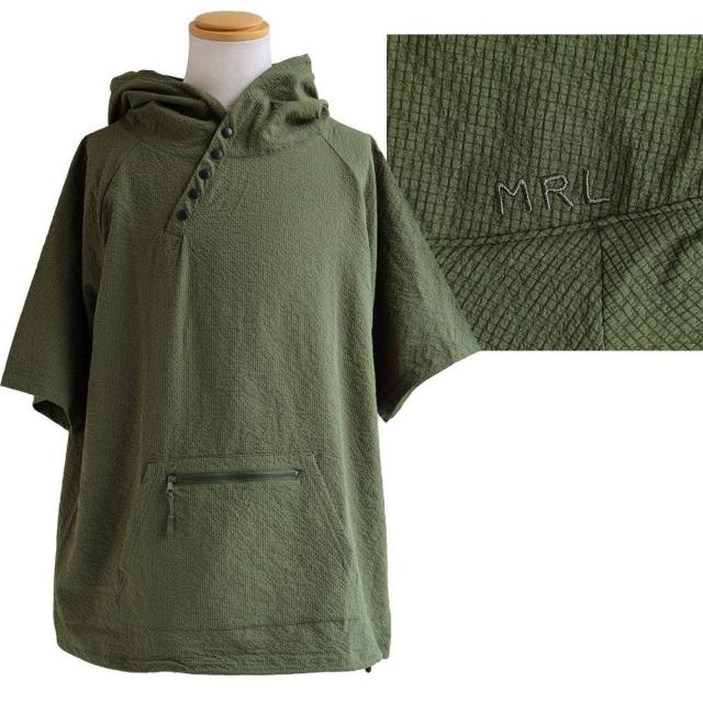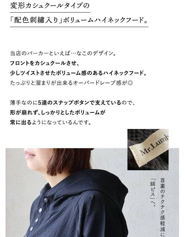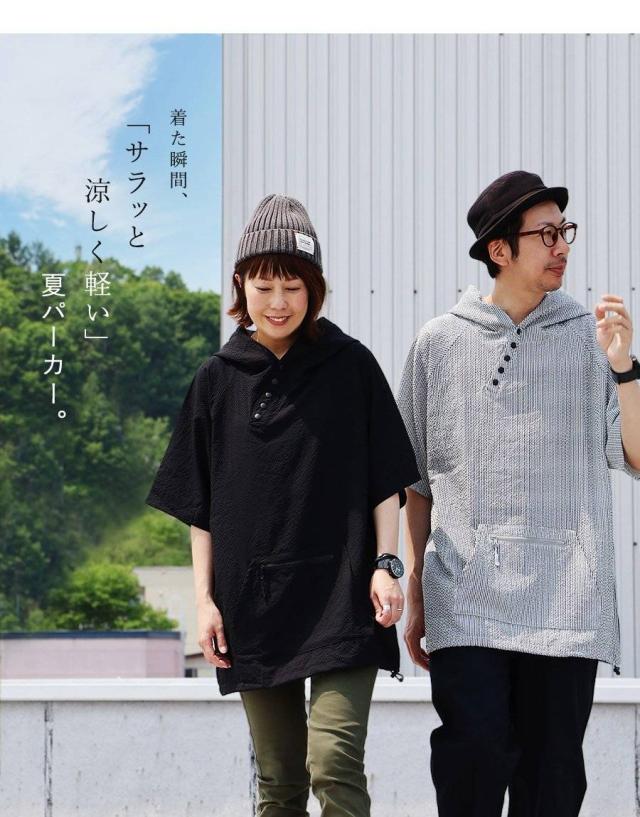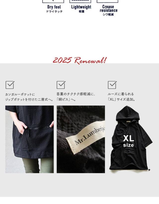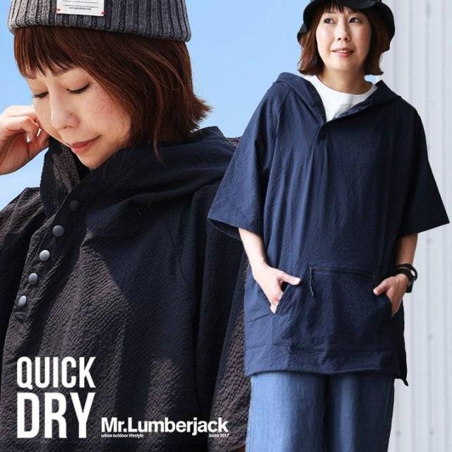 涼しい シャツ パーカー メンズ レディース ロング ワイド すっきり 着痩せ ストレッチ シアサッカー 薄手 二の腕 お尻 体系 カバー ロゴ刺繍 UV 夏 ななめボタン ポケット カジュアル パティ Mr.Lumberjack ミスターランバージャック