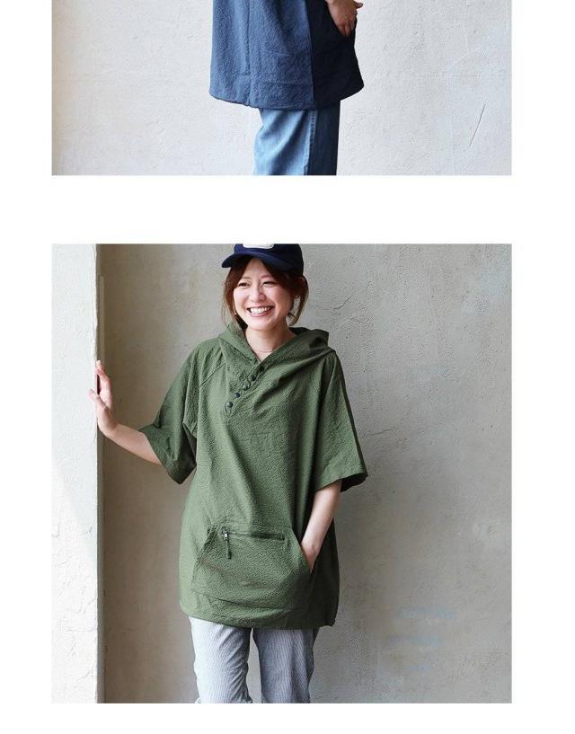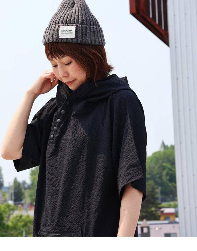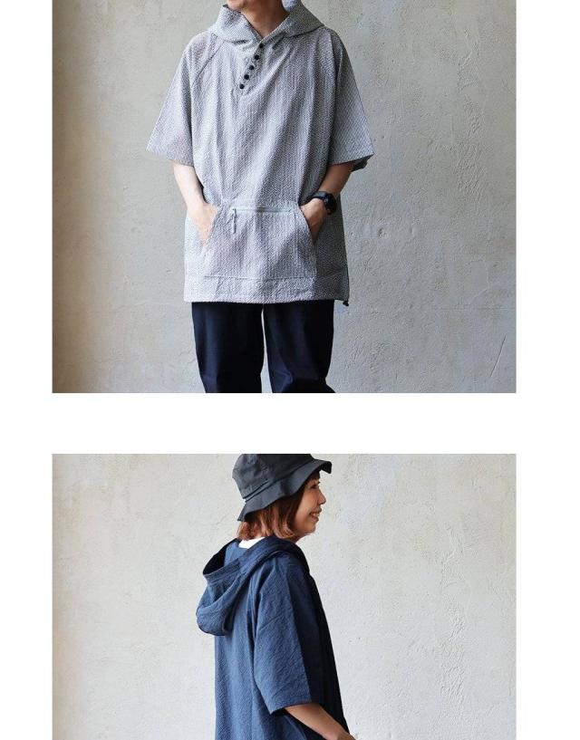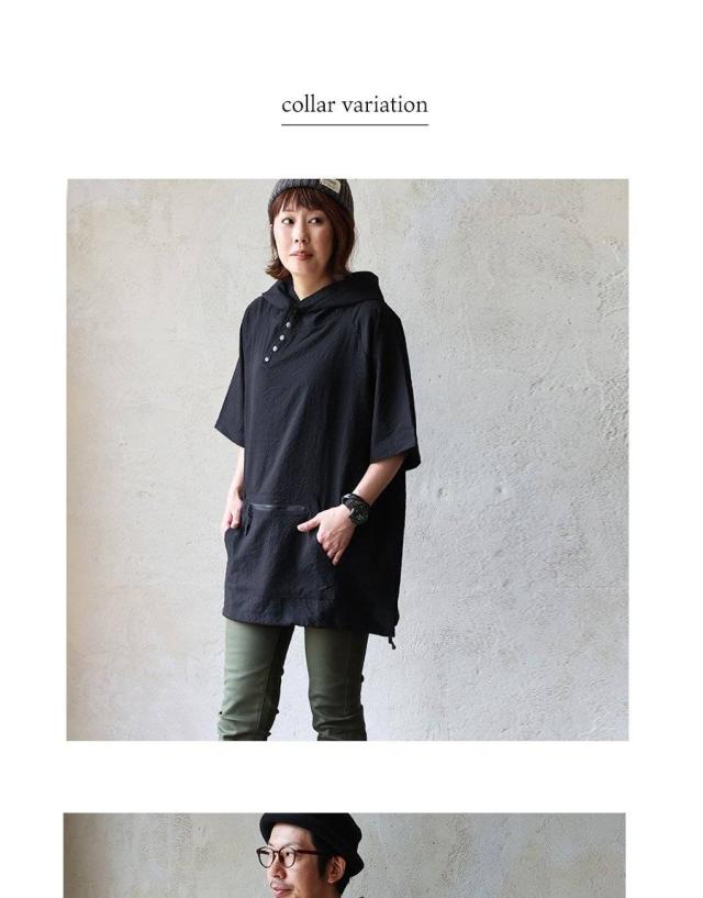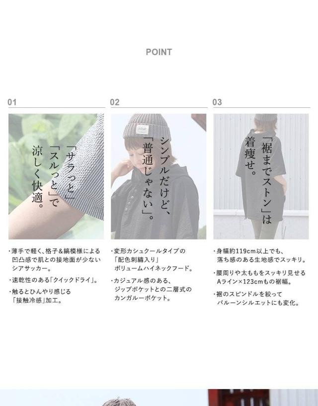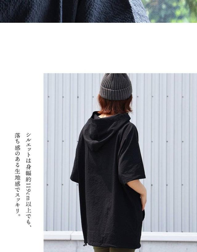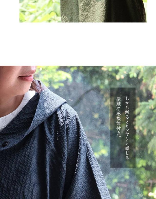涼しい シャツ パーカー メンズ レディース ロング ワイド すっきり 着痩せ ストレッチ シアサッカー 薄手 二の腕 お尻 体系 カバー ロゴ刺繍 UV 夏 ななめボタン ポケット カジュアル パティ