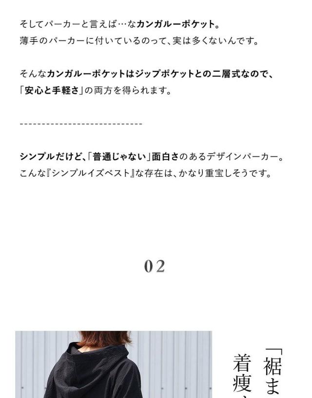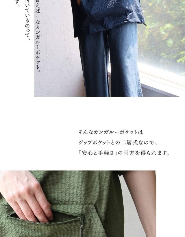・カジュアル感のある、ジップポケットとの二層式のカンガルーポケット。