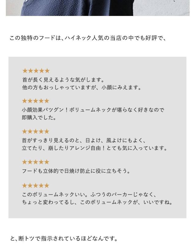 ・変形カシュクールタイプの「配色刺 入り」ボリュームハイネックフード。