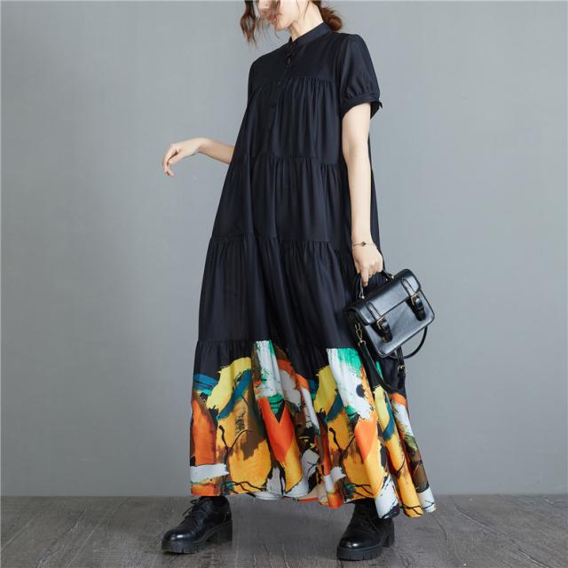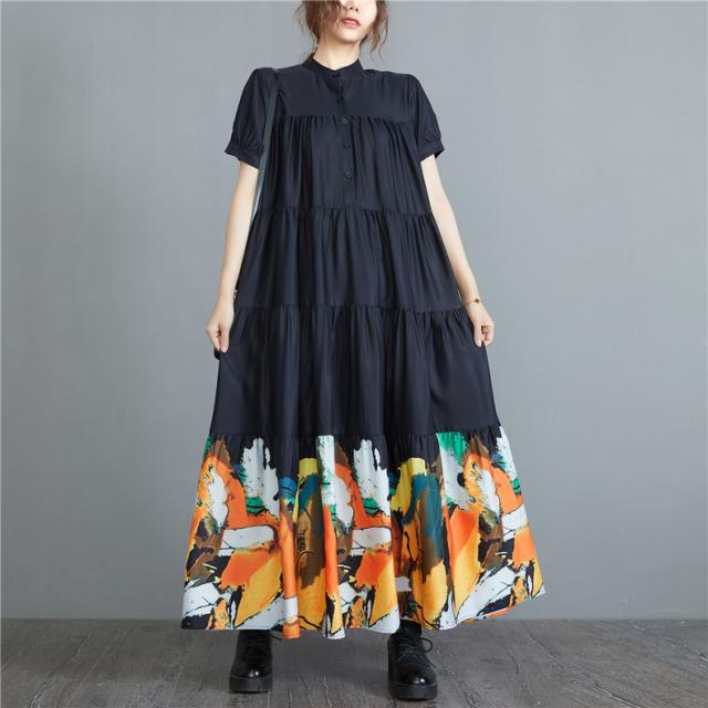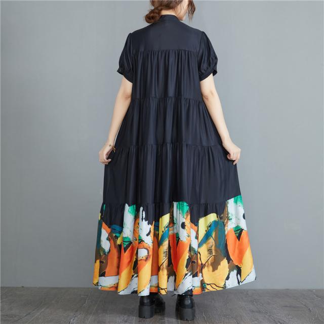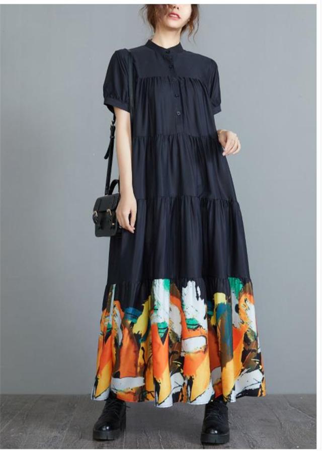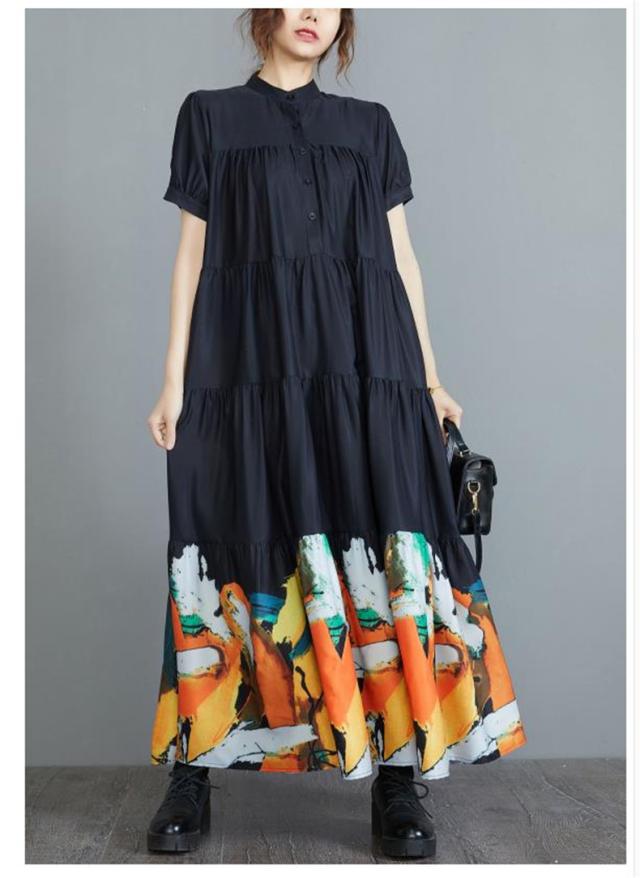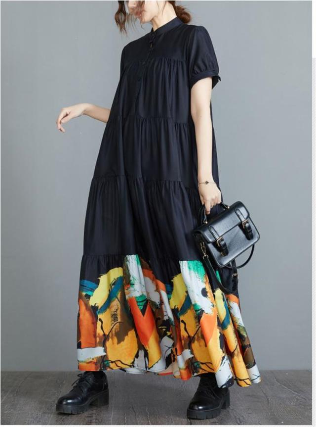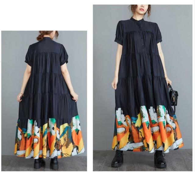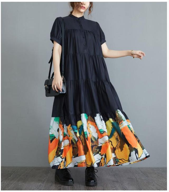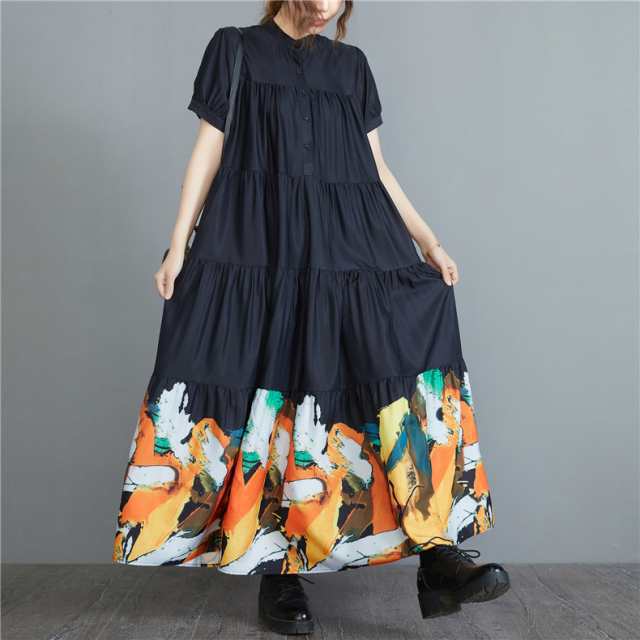 ワンピース ロングワンピース 春夏 プリント 花柄 マキシ フレアワンピース レディース マキシワンピース シャツワンピース 半袖 Aライン