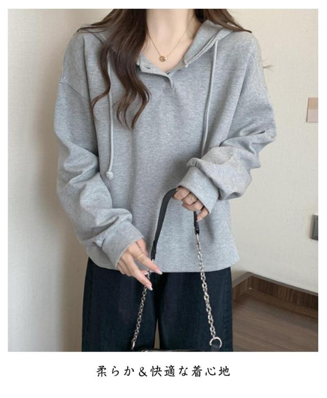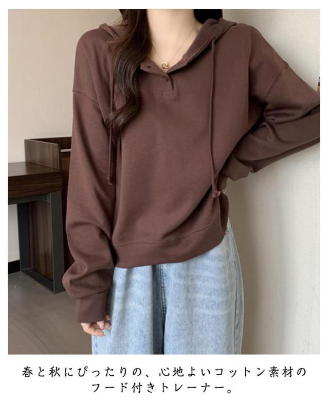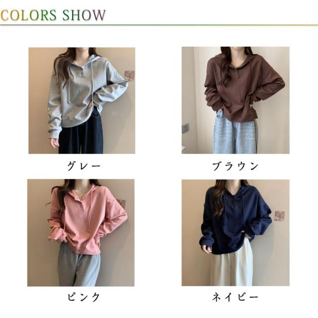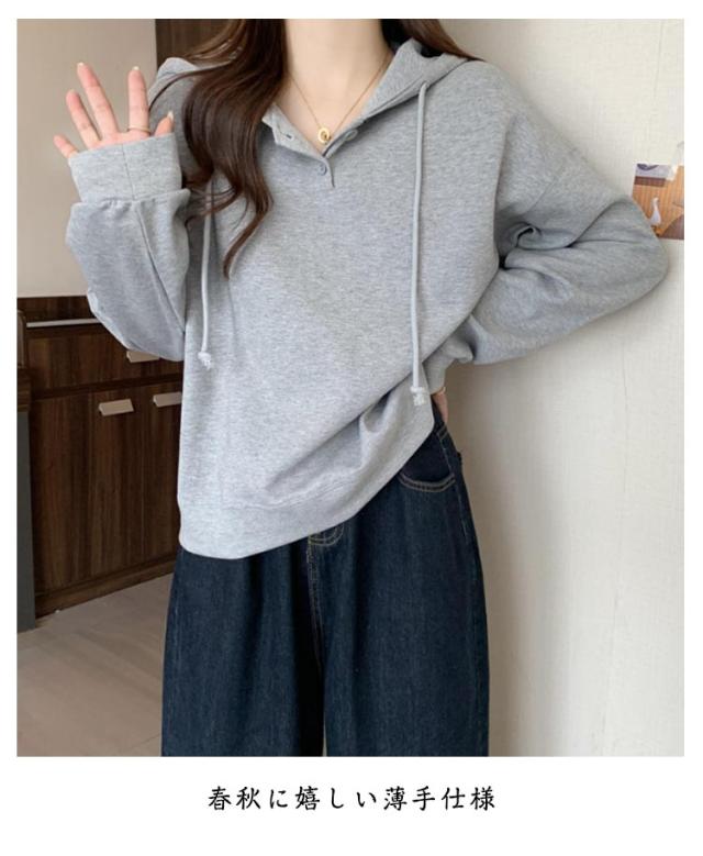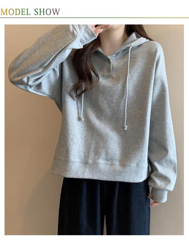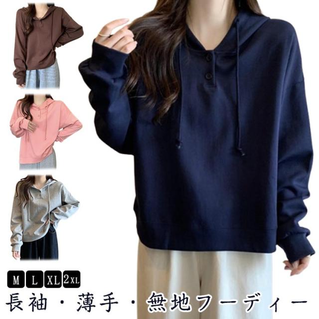 春秋 トレーナー プルオーバー レディース 長袖 綿 トレーナー シンプル フーディー 薄手 スウェット トップス 無地 ゆるシルエット ゆったり カジュアル 体型カバー パーカー グレー ピンク