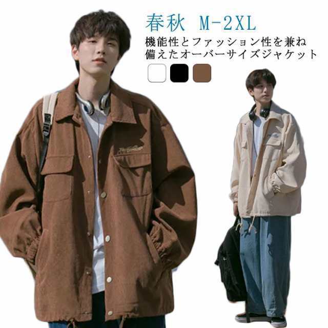 春 ジャケット オーバーサイズ カジュアルジャケット メンズ ライトアウター コーデュロイ ステンカラージャケット ブルゾン ジャケット 大きサイズ トップス 無地 シンプル 春 秋 アウター 20代 30代 40代 ワンポイント