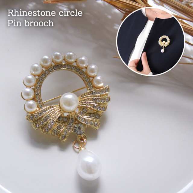 新作 ドロップ フェイクパール ラインストーン サークル ピン ブローチ レディース アクセサリー ジュエリー ピンブローチ ラペルピン コサージュ パール リース 結婚式 入学式 卒業式 入園式 卒園式 ゴールド